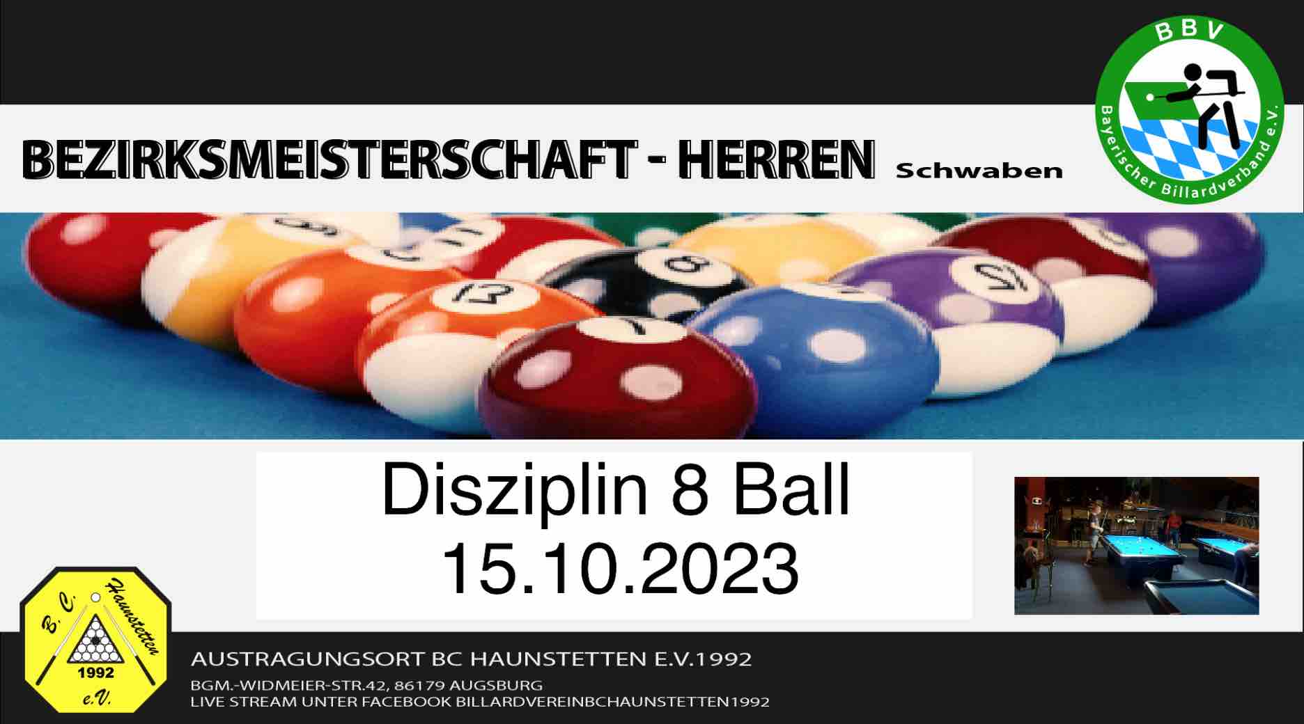 8 Ball Bezirksmeisterschaft Herren SchwabenSonntag, 15. Oktober 2023 |