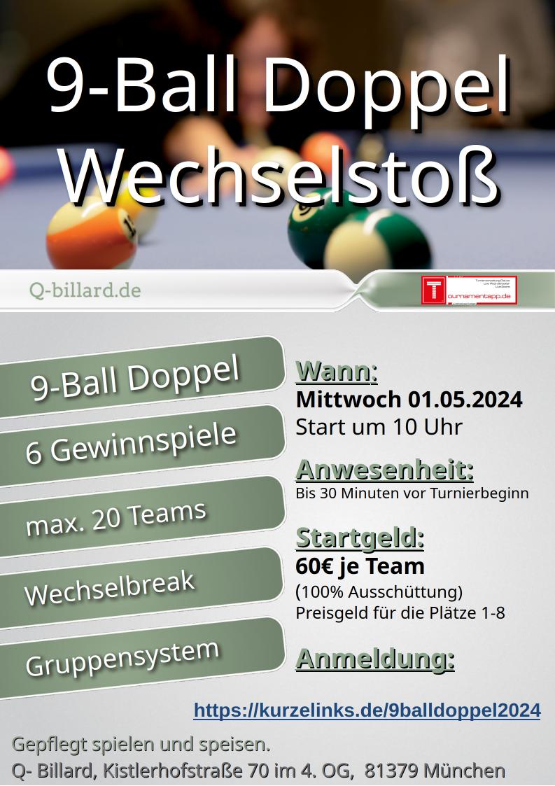 Q-Billard 9-Ball DoppelMittwoch, 01. Mai 2024 |
