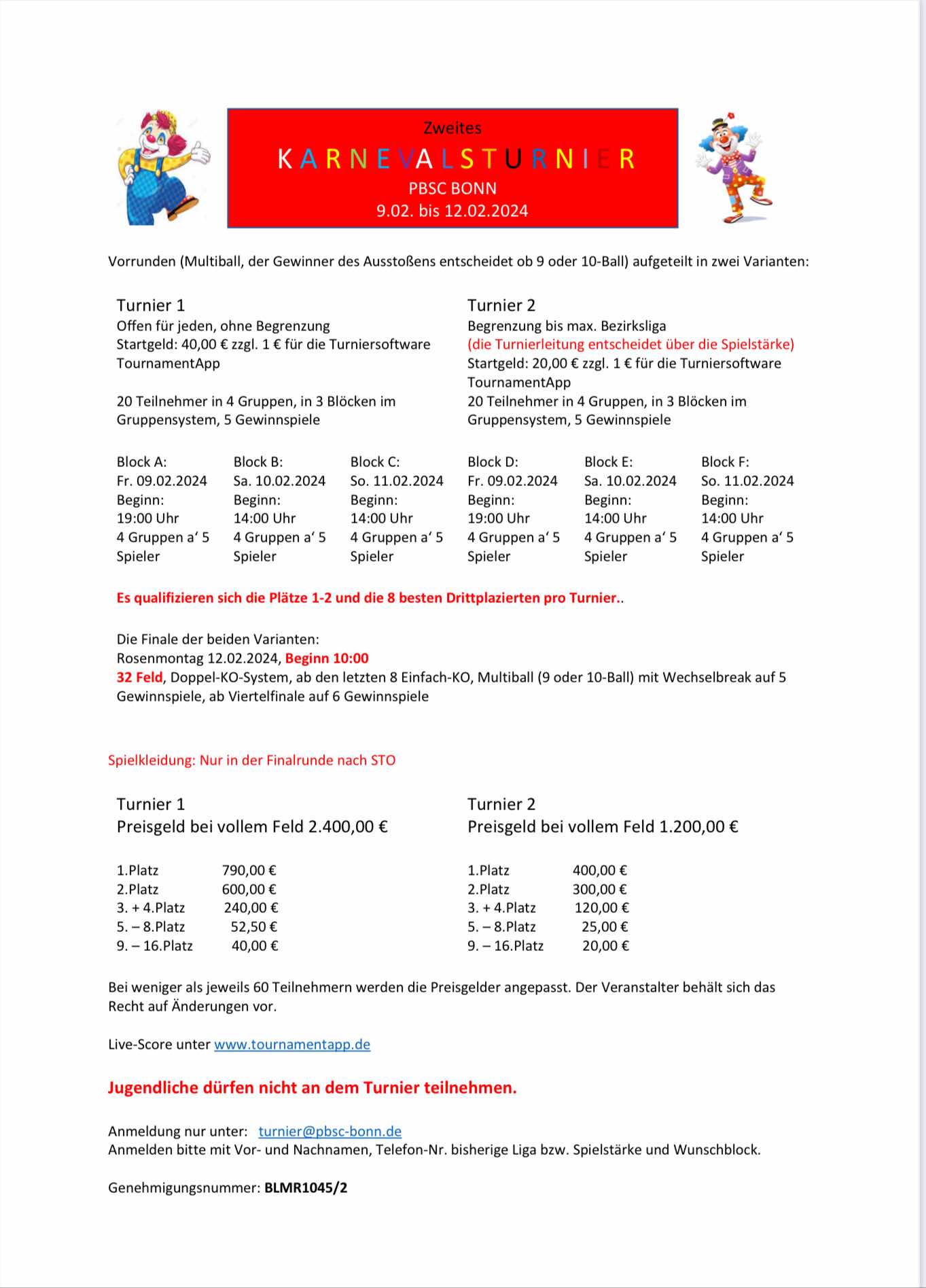 2.Karnevalsturnier PBSC BonnFreitag, 09. - Montag, 12. Februar 2024 |