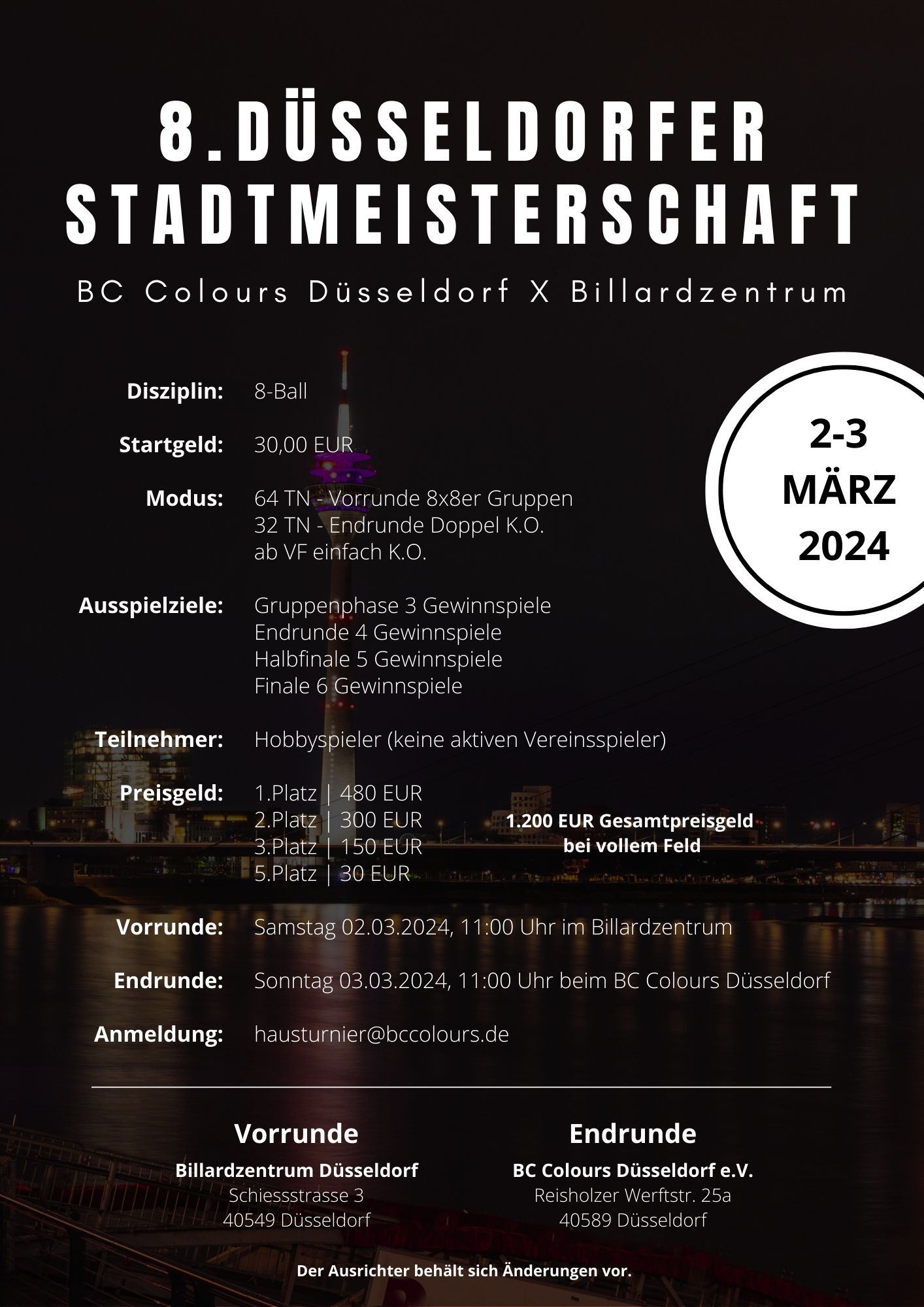 8. Düsseldorfer StadtmeisterschaftSamstag, 02. - Sonntag, 03. März 2024 |