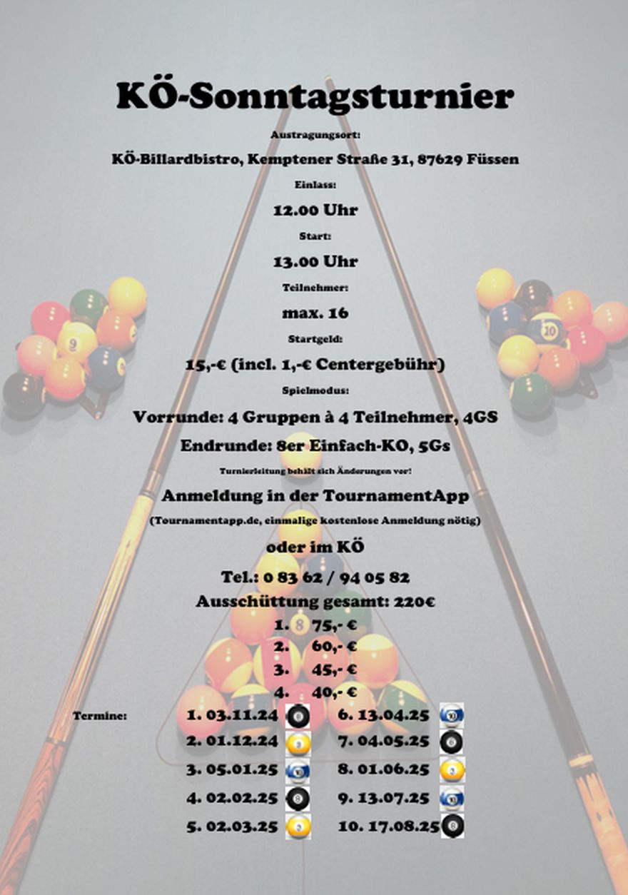 | Spielort | KÖ-Füssen Billardbistro Kemptener Straße 31 87629 Füssen |