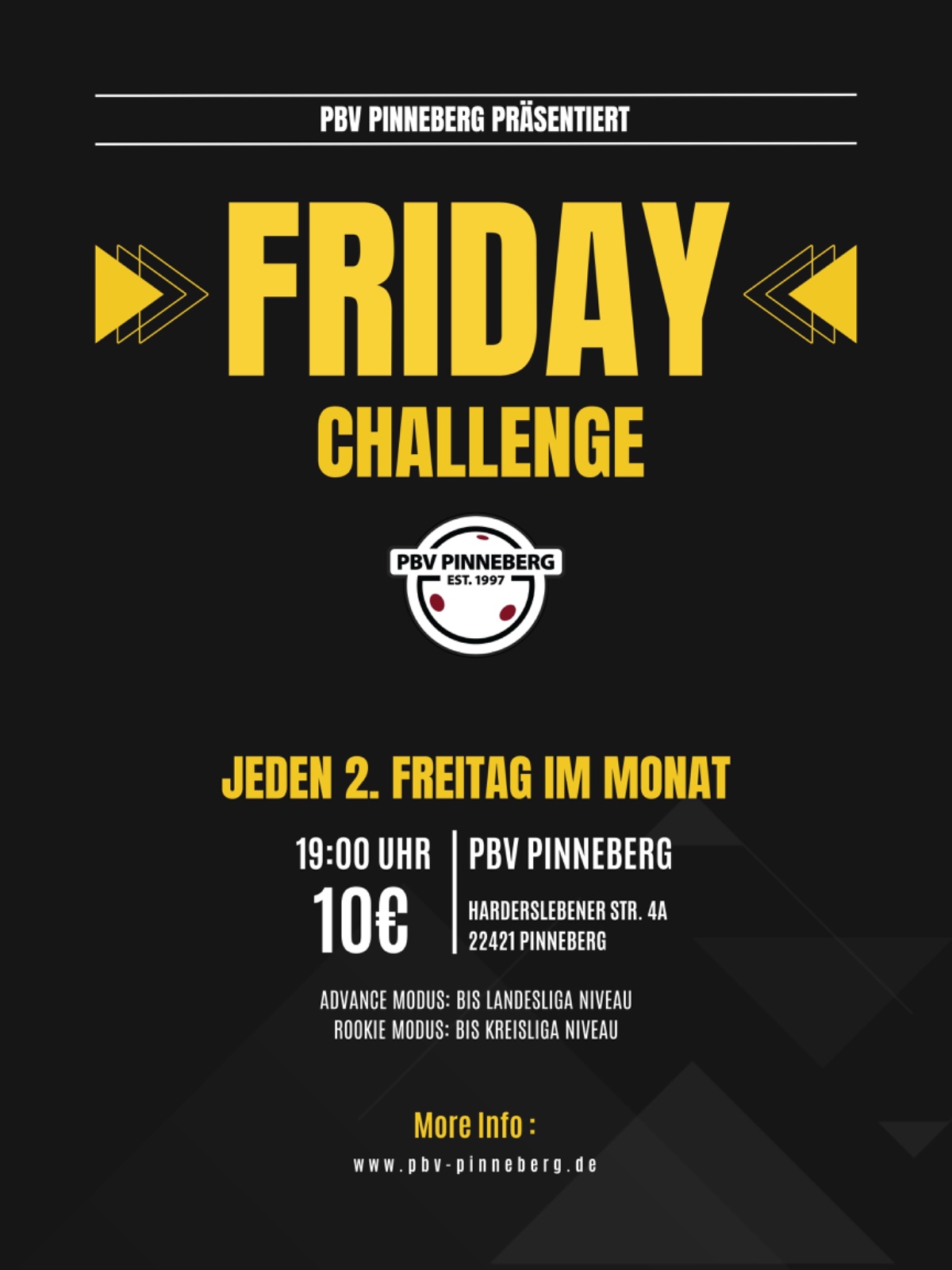 | Spielort | PBV Pinneberg Harderslebener Str. 4a 25421 Pinneberg |