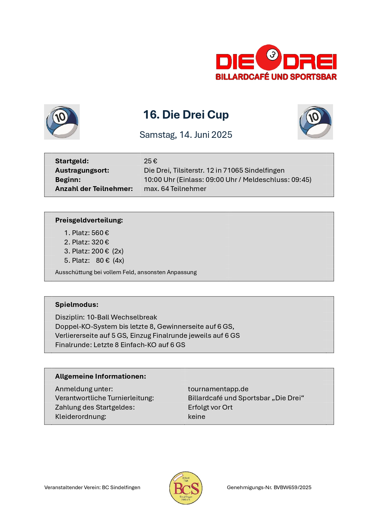 16. Die Drei CupSamstag, 14. Juni 2025 |