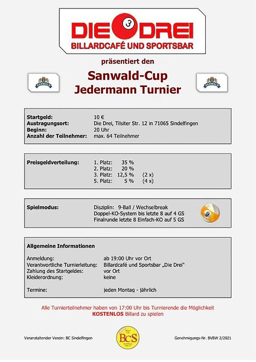 | Turniermodus | Turnier-Plakat |