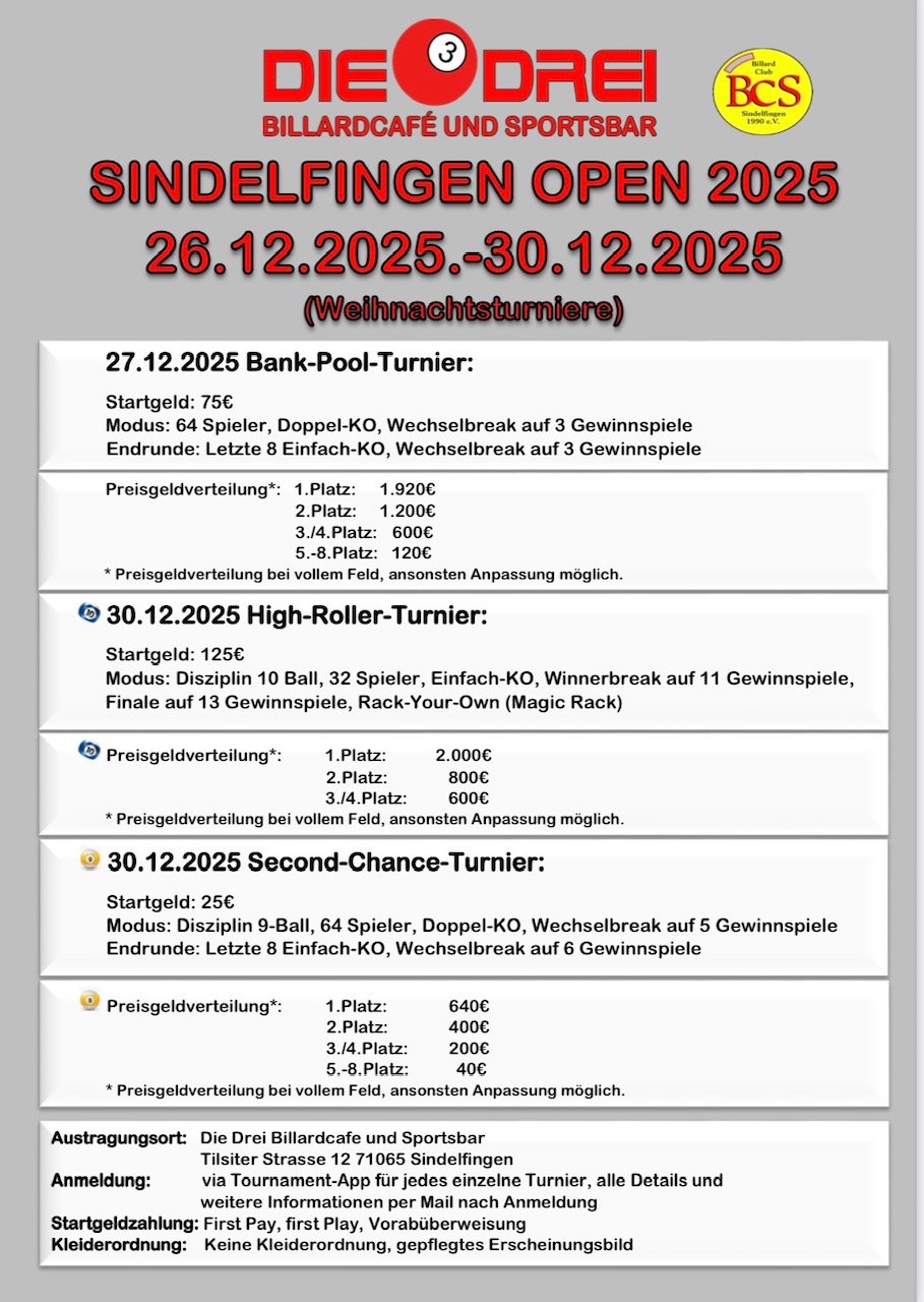 Second-Chance-Turnier Sindelfingen Open 2025Dienstag, 30. Dezember 2025 |