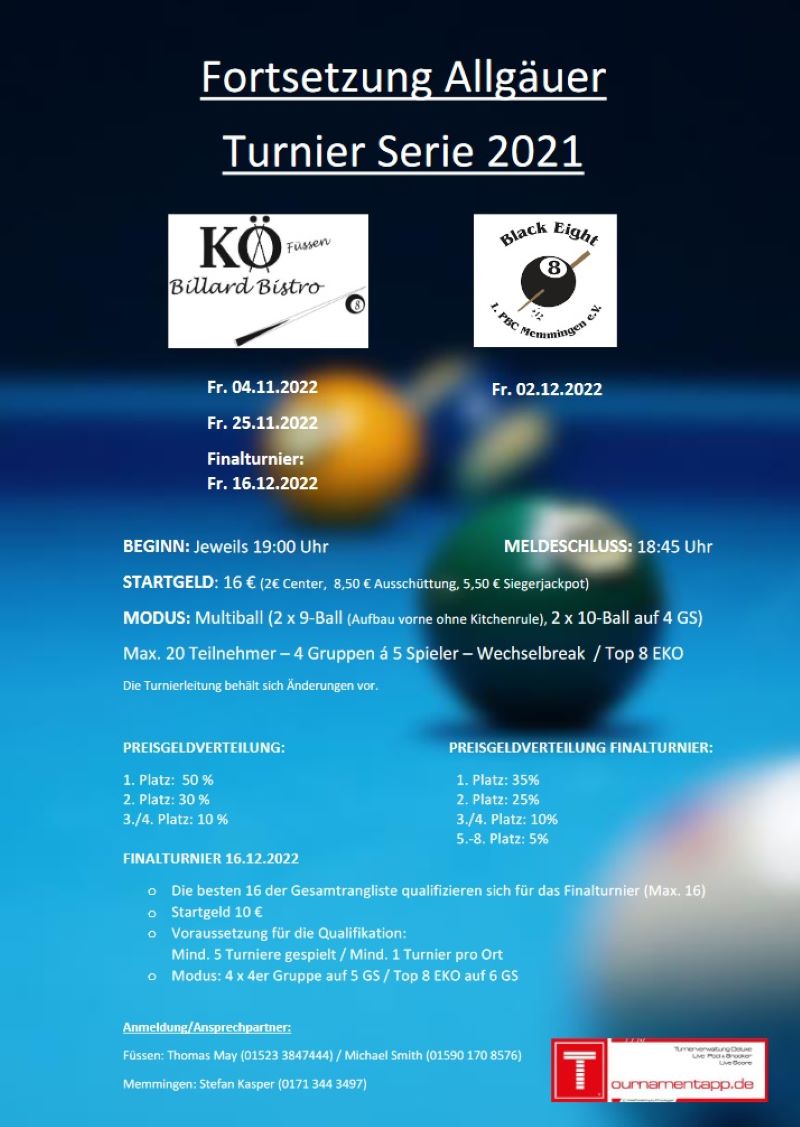 Fortsetzung Allgäuer Turnier Serie 2021Freitag, 02. Dezember 2022 |